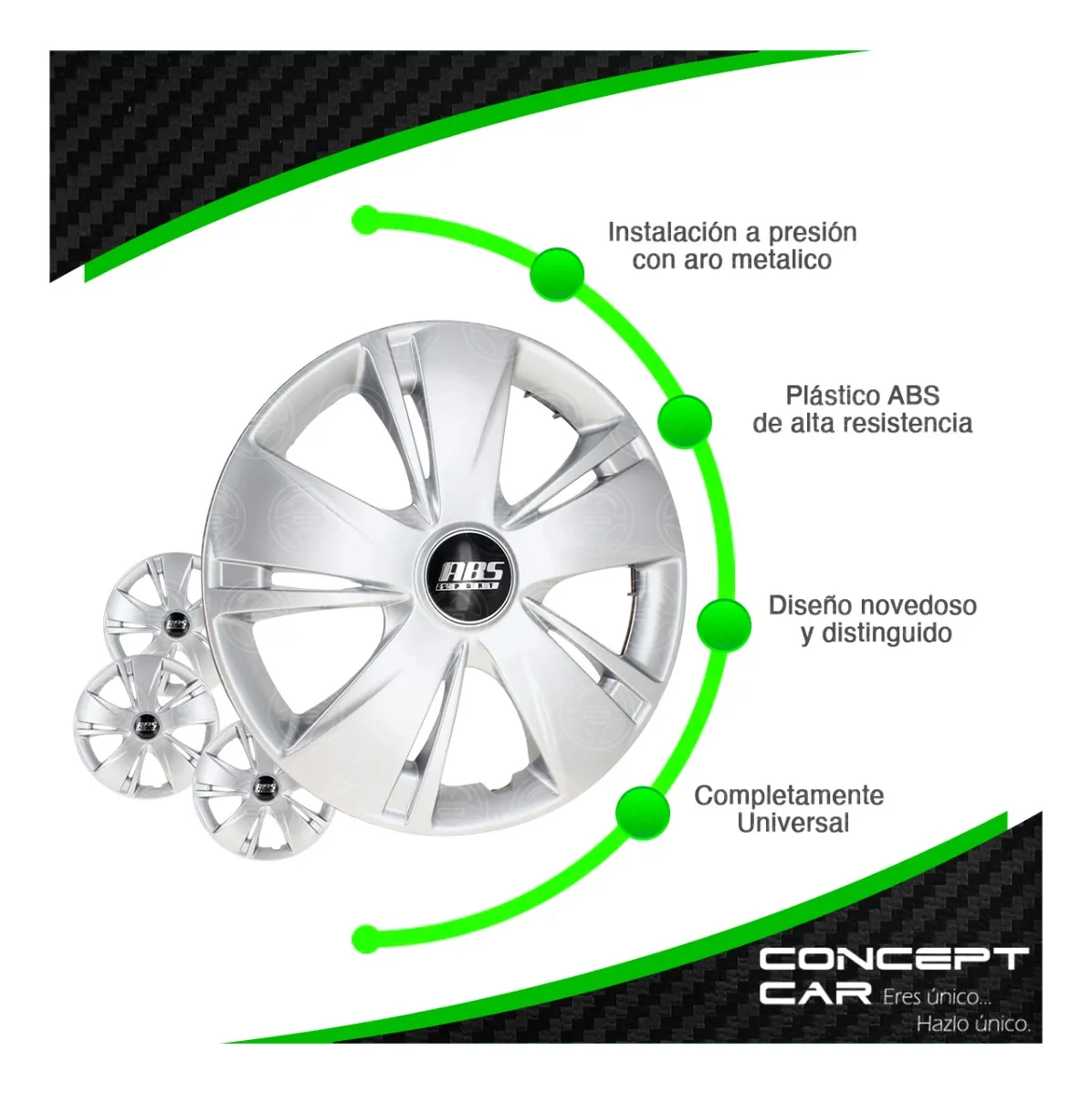 JUEGO 4 TAPONES DE RIN 14 PULGADAS ABS TIPO NISSAN MARCH