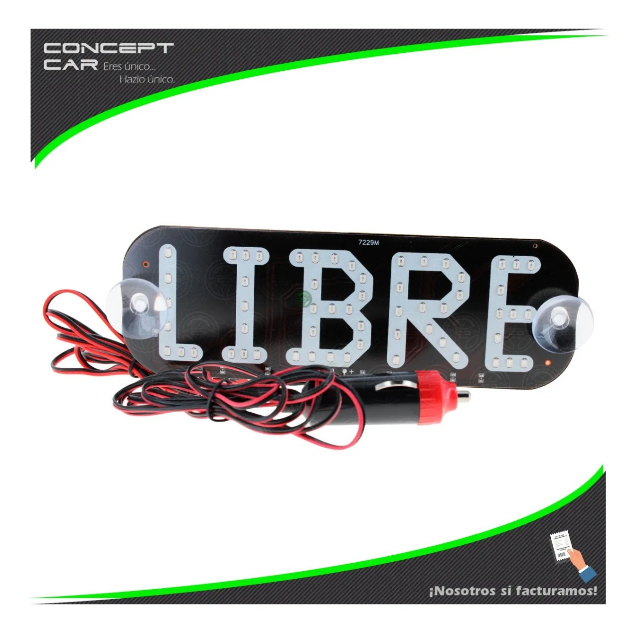 1 letrero color a elegir y cable con conexión al encendedor.