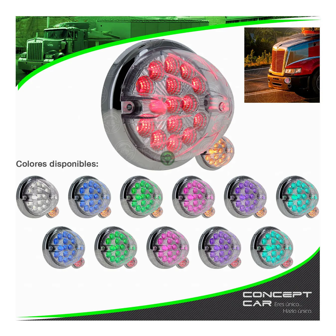 Mejora tu experiencia de conducción y tu seguridad, Concept Car ofrece a los conductores de camiones, tráiler y vehículos de seguridad una amplia gama de plafones de alto rendimiento. De esta forma, todos nuestros productos de iluminación cumplen los requisitos de rendimiento más exigentes y, además, ofrece excelente calidad.